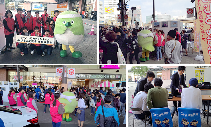 11月2日に大分県警察の主催で開催された警察展「ふれあいポリスフェスタ2019」において、サイバー防犯ボランティア「めじろんおおいた見守り隊」がインターネットの安全利用に関する啓発活動を行いました。