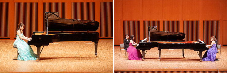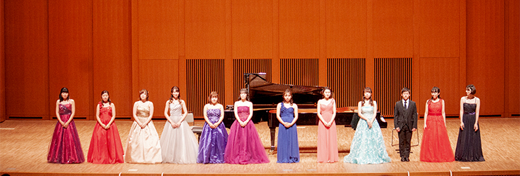 本学音楽科・専攻科音楽専攻のピアノコースの学生12名が出演し、ピアノソロ、ピアノ連弾、2台ピアノアンサンブルで多彩な曲目を演奏しました。