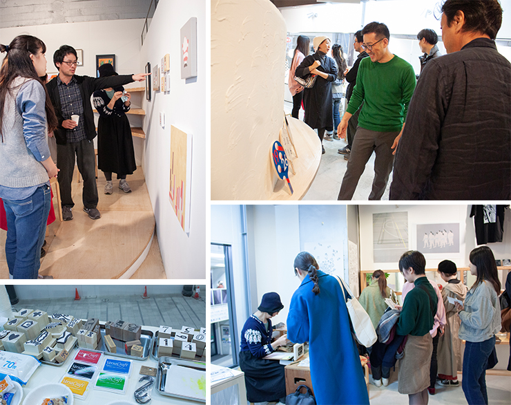 初日に行われたレセプションでは、作品を前に3名がそれぞれの業種への向き合い方や展覧会に対する思いなどを述べ、制作技法や作品完成までの工程を説明。来場者は様々な作品を前に作家との会話を楽しみました。
