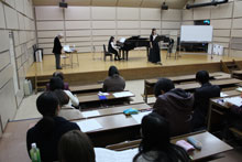 今回は、本学の学生10名がレッスンに参加、ドイツ歌曲をはじめ、モーツァルト以前のオラトリオアリア、宗教曲等を取り扱い、主にヘンデルのオラトリオ『メサイア』などで受講する学生が多くみられました。