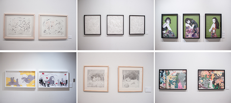 シルクスクリーン、リトグラフ、デジタルプリントなど様々な印刷技法で表現された作品34点を展示。教員、学生の個性あふれる作品を前に、来場者はその技法を興味深く鑑賞しました。