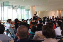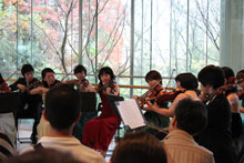 今回は本当にたくさんのお客様にお越しいただき、当初予定していた会場を変更、大きなガラス窓から美しく色づいた木々が眺められる解放感あふれるフロアでの演奏会となりました。