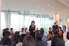 本学音楽科 川瀬麻由美教授をはじめ、本学学生、卒業生からなる“芸短ストリングアンサンブル”のメンバーが、シャガールに縁のある曲や馴染み深い映画音楽、小さな子ども達でも楽しめるジブリ映画のテーマ曲などを披露しました。