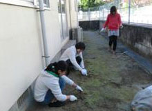 今回は、こどもルームの建物周辺の草取り作業をした後、ボランティアの方々による親子リズム遊びに参加させていただきました。草取り作業では、てきぱきと仕事をこなし、きれいになってすっきりしました。その後は、ルームに来ている1歳から3歳くらいの子どもたちとふれあい、一緒になって遊ぶことができ、大変楽しい時間を過ごすことができました。