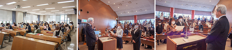 今年度は全国の新型コロナウィルス感染症拡大等の状況を踏まえ、会場や開始時間を分散するとともに、入学生にマスク着用、手指消毒、換気など予防対策を講じた上での実施となりました。