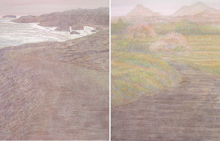 「春季展賞」受賞作品「この道~日向の春へ」(左)「この道~豊後の春に」(右)
