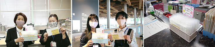 5月18日(月)には、小手川学長へ活動を報告し、学内各所にマスクを配りました。