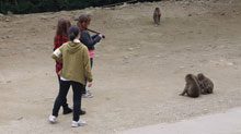 はじめはニホンザルを怖がっていた学生もいましたが、のどかな雰囲気の中でしだいに慣れることができ、ニホンザルを観察、撮影していました。最近話題になっているボスざるの「ベンツ」もみることができました。