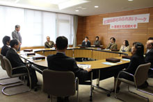 講演終了後は、知事と学生による「ふれあいトーク」を実施。各学科から代表の学生が出席し、自分たちが学んでいることや努力していること、留学先でのエピソードなどを語りました。夢が実現した学生、夢に向かって頑張っている学生、参加した学生それぞれが異なる分野の中で、みなイキイキと充実したキャンパスライフを送っており、そんな学生たちに知事も興味深くいろいろと質問されました。学生らは知事との1対1の対談に緊張した様子でしたが、貴重な経験となりました。