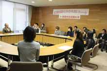 今回の「県政ふれあいトーク」では、本学の魅力をあらためて直に知事に見ていただき、そして今後の活力となるであろうお話を聞かせていただき、たいへん有意義な時間となりました。この日の事を契機に、学生、教職員が一丸となって、個性がキラキラ輝く活力ある大学づくりに努力していきたいと考えます。