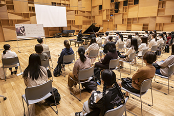 10月30日(金)、ピアニストの松田華音さんが、本学「音楽の魅力」の授業で特別講義を行い、学生47人が聴講しました。
