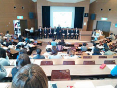 大分市議会は44名、議決権・監視権・意見表明権・選挙権・自立権をもちます。総務・厚生・文教・建設・経済の常務委員会。議会運営委員会と子ども育成・行政改革推進特別委員会、総合交通対策特別委員会・地域活性化特別委員会が設置されています。本議会はネット中継され、委員会議事録はホームページで公開されています。議会からは8人の議員さんが見えられ、学生と盛んな意見交換が行われました。