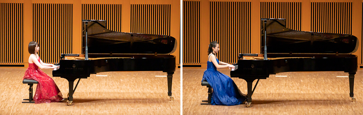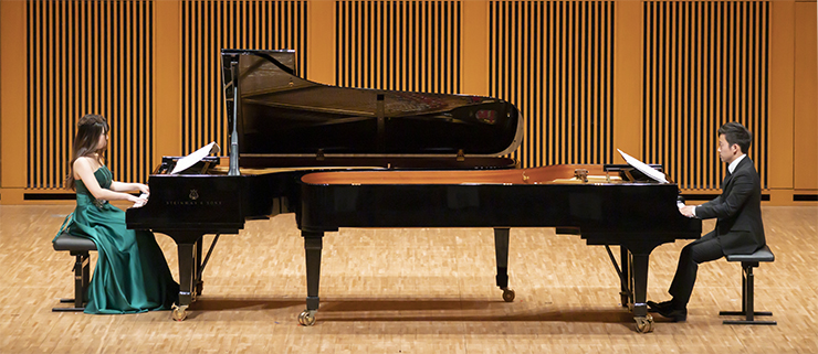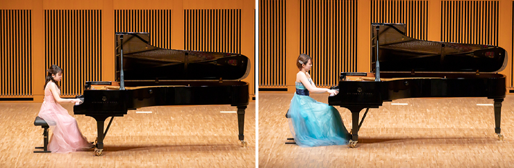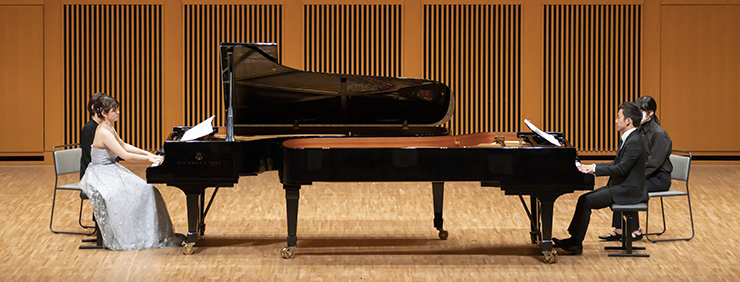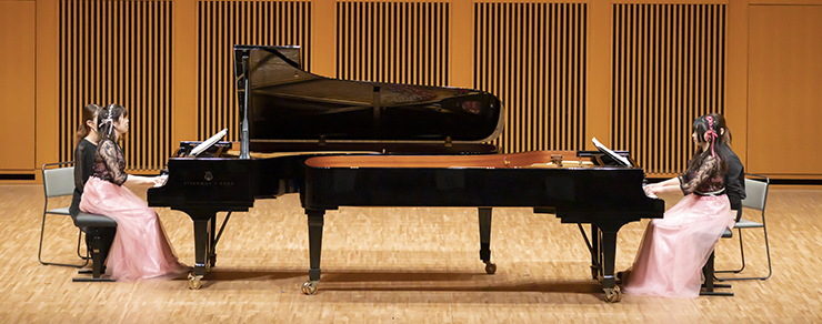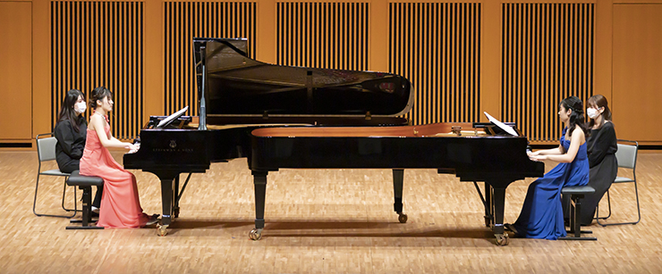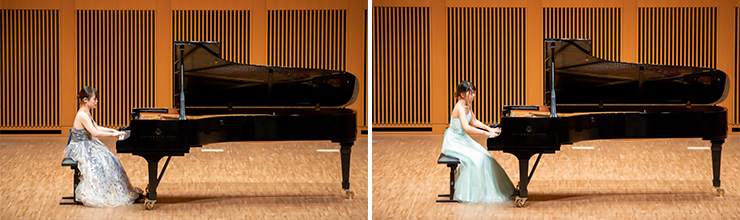 第1部のピアノ・ソロでは、短大と専攻科1年の学生7名が日ごろの練習の成果を丁寧に演奏。第2部の2台ピアノアンサンブルでは、専攻科2年生7名がそれぞれ息の合った演奏を披露しました。学生たちの鍛錬の成果に、会場からは大きな拍手と歓声が上がりました。