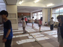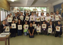 廃校利用の方策を探る試みとして、全国、または韓国からこの竹田キャンパスの活用状況の視察に訪れました。まずはこちらの現状報告から始まっての意見交換会。全国でも大学を母体とした廃校再生なかなかな実例が無いようで興味深く視察しておりました。この竹田キャンパスにしても、すべてが順調に進んでいるわけではありません。いろいろな問題をかかえながらゆっくりと進んでおります。そんな中で、いろいろ意見をもらうことにより、まだまだ発展していける要素を考えさせてもらいました。意見交換のあとは、せっかくですので簡単な染色体験もしてもらいました。