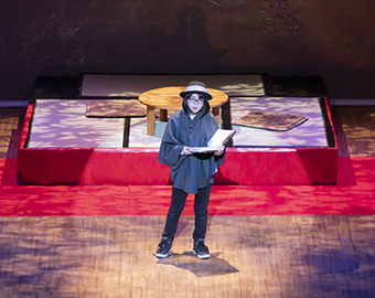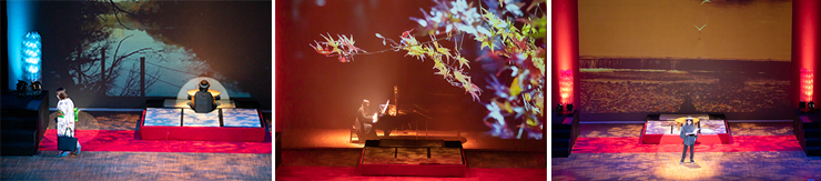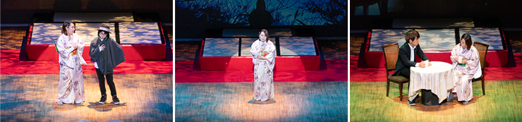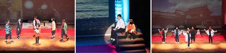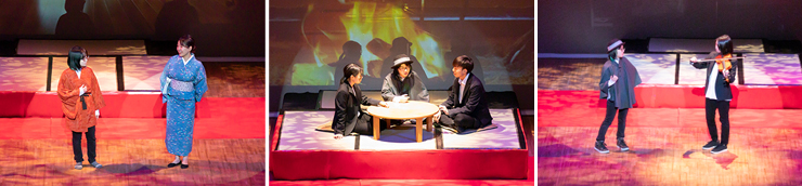 詩人中原中也の生涯を追って、主人公の故郷山口県や京都・東京などゆかりの地を取材。撮影した映像を背景に美術科・音楽科・国際総合学科・情報コミュニケーション学科の全4学科の学生と卒業生が舞台化しました。