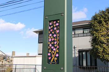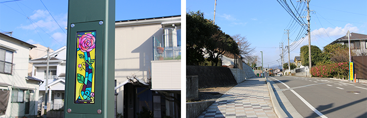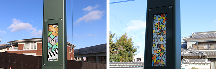2018年度にサービスラーニングの一環としてデザイン作成に取り組んでいる、南蛮文化および大友宗麟をイメージしたステンドグラスが埋め込まれた街灯4基が追加設置されました。大学周辺の歩道に設置されたステンドグラスが埋め込まれた街灯はあわせて14基となり、計画した全てが設置され、完成する運びとなりました。