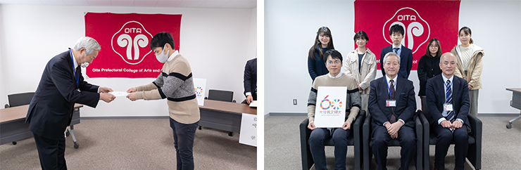 1月18日(月)、「大分県立芸術文化短期大学創立60周年記念ロゴマークコンテスト」の表彰式を行いました。