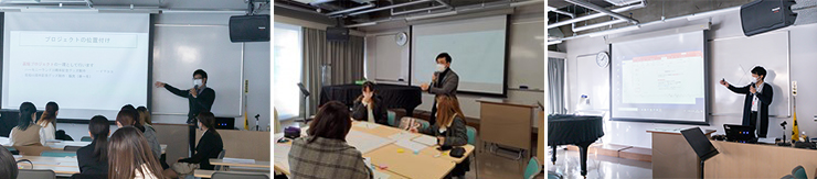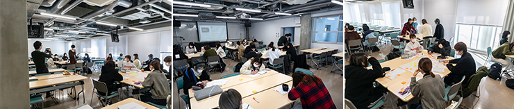 2月9日には第1回学内グループワークを開催し、野田准教授からプロジェクトの概要と秘密保持誓約について説明の後、千賀専任講師からマーケティングの講義、西口准教授によるデザイン企画のグループワークが行われました。