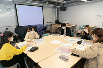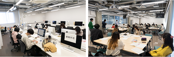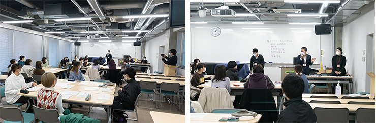 第4回はハーモニーランドのご担当者の方々にご来学いただき、各グループが第3回で作成し提出したビジュアル案のうち、採用案の改善点などを学生へ直接お話いただきました。