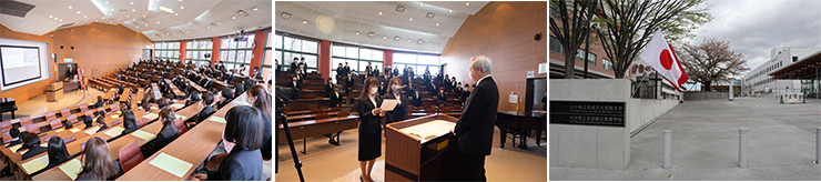 小手川大助学長は式辞で「失敗を恐れずチャレンジを繰り返し、中身の詰まった2年間を過ごして欲しい」と新入生を激励し、短大と専攻科のそれぞれ入学生代表が「学則を守り、学生としての本分をつくします」と宣誓しました。