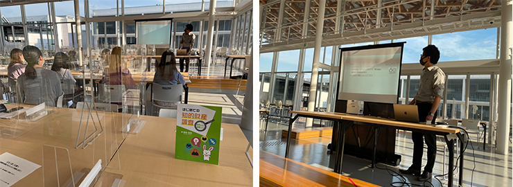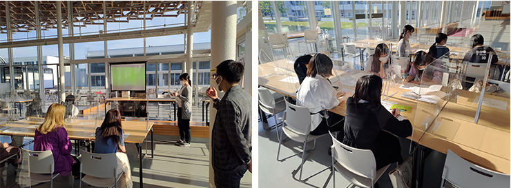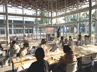 前回西口准教授のデザイン講義で行ったグループディスカッションを基に、各自作成したラフスケッチを持ち寄り、グループ内で議論しながらデザインのラフ案にまとめ、発表しました。
