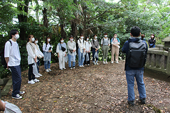 6月5日(土)、サービスラーニングの一環として、学生28名が大学の立地する上野ヶ丘地域を清掃しながら、古墳時代から戦国時代にかけての近辺地域の歴史や文化を学びました。