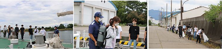 7月4日(日)、サービスラーニングの一環として、乙津川清掃活動及び海上保安部訪問学習を行い、本学から21名の学生が参加しました。