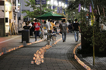 8月7日(土)サービスラーニングの一環として大分市府内五番街で「七夕キャンドルナイト」を開催しました。この活動は、商店街の活性化と地域の子供たちに夏の思い出を作ってもらうことを目的として開催したもので、企画・運営の全てを学生が立案し準備をしてきたものです。