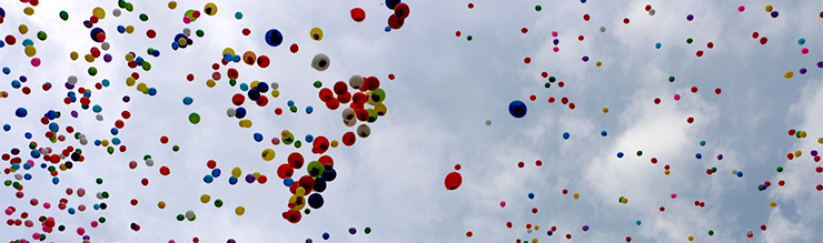 午後5時、大分市民から寄せられた願い事が書かれた6万枚の短冊が入れられた大型バルーンを含め合計15,000個の風船(風船、紙、紐など全て環境に配慮した自然素材を利用)が、校庭から一斉に夜空に放たれました。