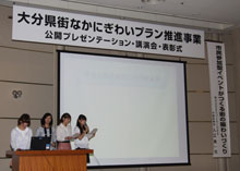 「街なかにぎわいプラン」は、大分県の商店街を魅力的にし、集客率アップを狙った斬新なプランを募集していたもので、23件応募のあった中から第一次審査を通過した学生枠・一般枠各5団体が公開プレゼンテーションを行い、商店街関係者や有識者による選考で最優秀賞、優秀賞が決定しました。