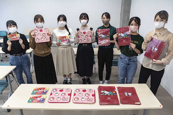 商品はクリアファイル、シール、ハンドタオルの3種類で、学生有志20名が主体となり企画から販売促進までを、美術科、国際総合学科、情報コミュニケーション学科の3学科の教員のサポートを受けながら実現したものです。