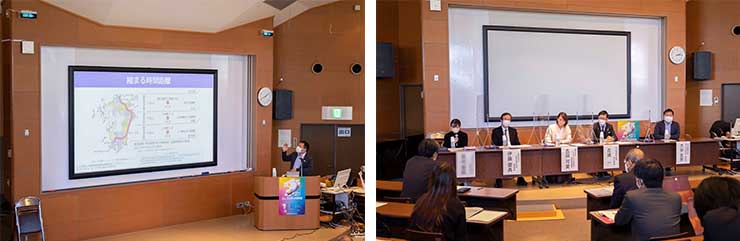 パネルディスカッションでは、国際総合学科ビジネスコースで観光学を学ぶ学生が参加し、東九州新幹線に関する若者への認知が乏しいことから、学生向けに授業で取り組みを呼びかけると我がこととして考えるようになると意見を述べました。 参加者は学生から見る課題点や問題解決に向けた提案に深く耳を傾けていました。