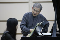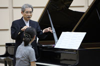講師にあたった辛島輝治先生は、大分県出身のクラシックピアニストで、東京藝術大学名誉教授です。日本音楽コンクールをはじめ多数のコンクールの審査員を務めており、長年にわたりシューベルト・アーベントを開催し、その演奏は好評を博しています。
