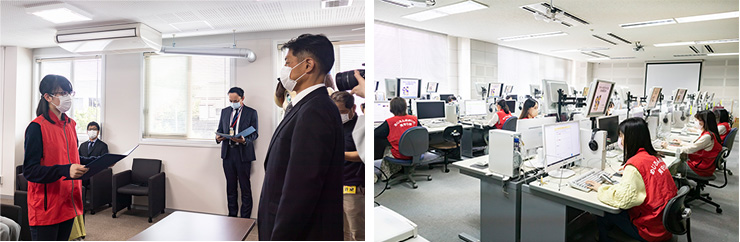 式では大分県警の生活安全部サイバー犯罪対策課長から学生に委嘱状が手渡され、その後、情報処理演習室で実際にネットのパトロールを行いました。