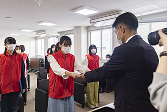 4月25日(月)、本学事務棟小会議室において、サイバー防犯ボランティア「めじろんおおいた見守り隊」の委嘱式が行われました。情報コミュニケーション学科の野田研究室に所属する2年生11名に対し、大分県警から委嘱状が交付されました。