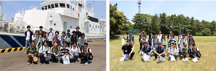 6月4日(土)、サービスラーニングの一環として乙津川清掃活動および海上保安部訪問学習を行い、本学の学生16名が参加しました。