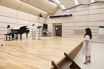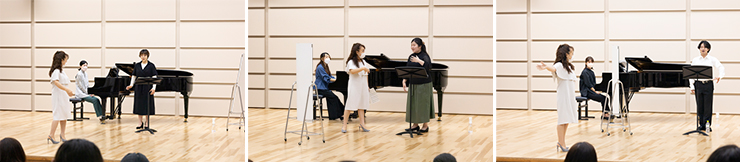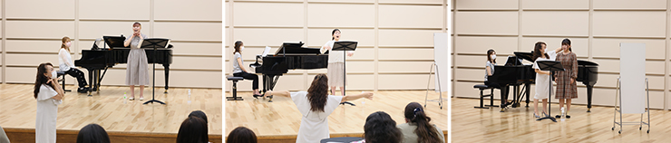 学生の発声の特長に合わせた細やかな指導に加え、個別の練習方法などさまざまなアドバイスをいただきました。公開で訪れた皆さんは、レッスンのメモをとりながら先生の言葉を自身に当てはめて熱心に学んでいました。