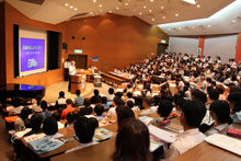 9月15日(日)、今年度 第2回目となるオープンキャンパスを開催しました。前回同様、今回も多くの方々にお越しいただき、全体説明会も「大講義室」と中継を繋いでのサテライト会場「視聴覚室」と「101講義室」のあわせて3会場で行いました。