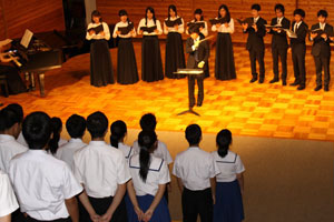 一方、音楽科学生たちにとっても実り多い演奏会でした。指揮の男子学生は、今回の演奏会がデビュー。「最初は緊張したけれど、だんだん気分がのってきて、振りも大きくなってきました。とても良い経験でした」と語ってくれました。