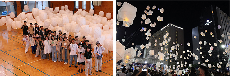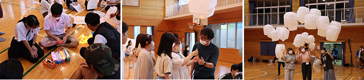 その後、全体・部門別で打ち合わせが行われ、午後8時半から会場にランタンを移動させ、市民の方々にこれをお渡しし、ゴスペルが歌われるなかで一斉にランタンが夏の夜に放たれました。これらの内容はYoutubeなどでも同時配信されました。