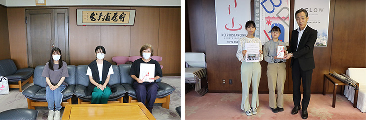 今年度、サービスラーニングの一環として、ウクライナ避難民の方々を支援するための募金活動を4月から7月まで計5回(参加学生計53名)、行いました。これまで集めた募金を寄付するため、活動に参加した学生の代表が8月10日(水)に日田市役所を訪問しました。同市ではいまウクライナから避難をしている6名を受け入れて生活支援をしています。
