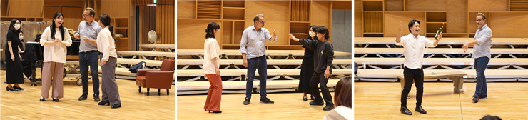歌曲の誕生した時代背景を踏まえ、演じる役の社会的立場と人間関係を解説しながら、言葉に合わせた立ち振る舞いやその表現手法など、実演を交えて徹底的に指導していただきました。 学生達は、後半には感情豊かで堂々とした表情に変化していました。また、一流の演出家からのレッスンを受講できたことを大いに喜びました。