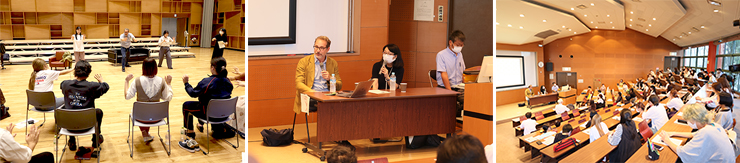 「フランチェスコ・ミケーリ 演出家・アートプロデューサーとしての仕事」と題した講演会では、アートマネジメントプログラムを受講する学生を中心に多くの方が訪れました。 オペラの歴史や、ご自身が芸術に携わる仕事を志した経緯、これまで取り組んで来られたことについて音楽や映像を交えて解説し、コロナ禍で芸術分野が苦境に立たされている中、音楽家や芸術に携わる仕事を学ぶ学生に向けてエールを送りました。