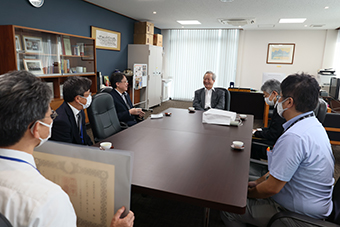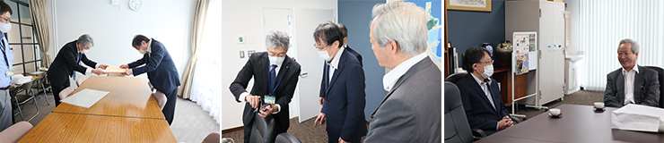 令和4年春の褒章で本学情報コミュニケーション学科の吉山尚裕教授(社会心理学)が藍綬褒章を受章したことに対し、10月5日(水)大分県の市町村振興課長が来学され、伝達式を行い、小手川大助学長に受賞を報告しました。