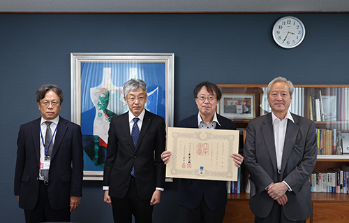 情報コミュニケーション学科 吉山 尚裕 教授の藍綬褒章伝達式が行われました