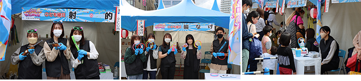『おおいた大会』では、イベントの一つである『音楽と食の祭典「OITA FESTIVAL」』の縁日ブース(輪投げや射的など)において、学生たちが親子連れの方々を対象に活動しました。