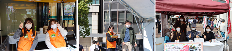 これらの会場では、赤い羽根共同募金応援プロジェクト2022の専用ブースも設け、市民の方々や全国から来県している青年会議所の皆様から募金を頂きました。