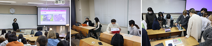 今回は、「様々なクリエイター・デザイナー職がどのような役割を担い一つの作品が出来上がるのか」、「作品を楽しんでもらうための工夫」、「求めている人材」などについて講義を受けました。