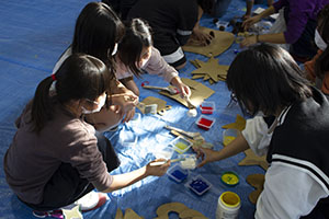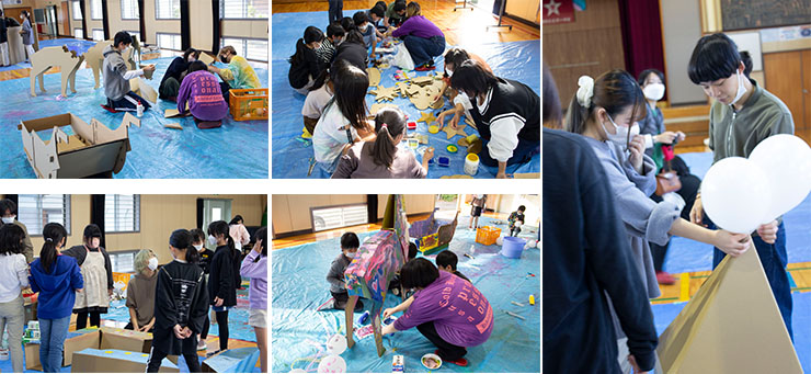 「地域ふれあいアート講座」は、本学の地域貢献活動の一貫として、2005年から毎年、県内各地の小学校を中心に取り組んでいるもので、子どもたちに創作の喜びや楽しさを味わってもらい、造形美術に対する興味や子どもたちの持つ感性を引き出すことを目的に行っています。