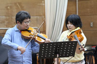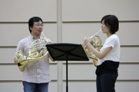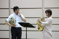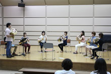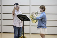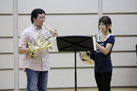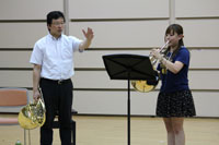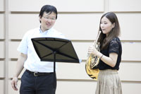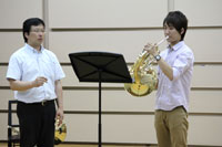 これは「iichikoグランシアタジュニアオーケストラ」の講師としてNHK交響楽団員の方が来県した際、本学の学生も実技指導を公開レッスンというかたちで受講することができるというもので、今回はヴィオラの小野富士先生とホルンの日高剛先生にレッスンを受けました。